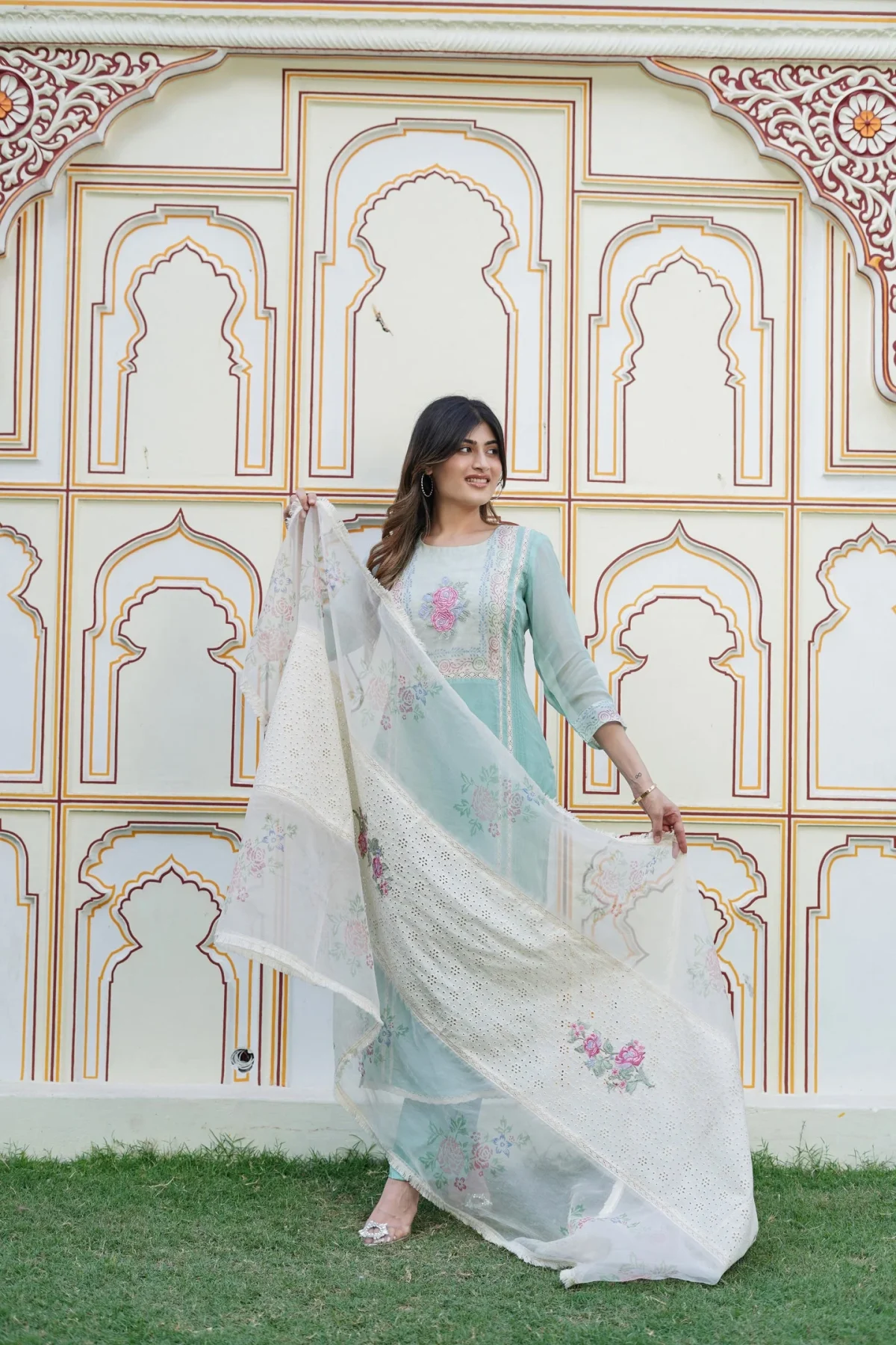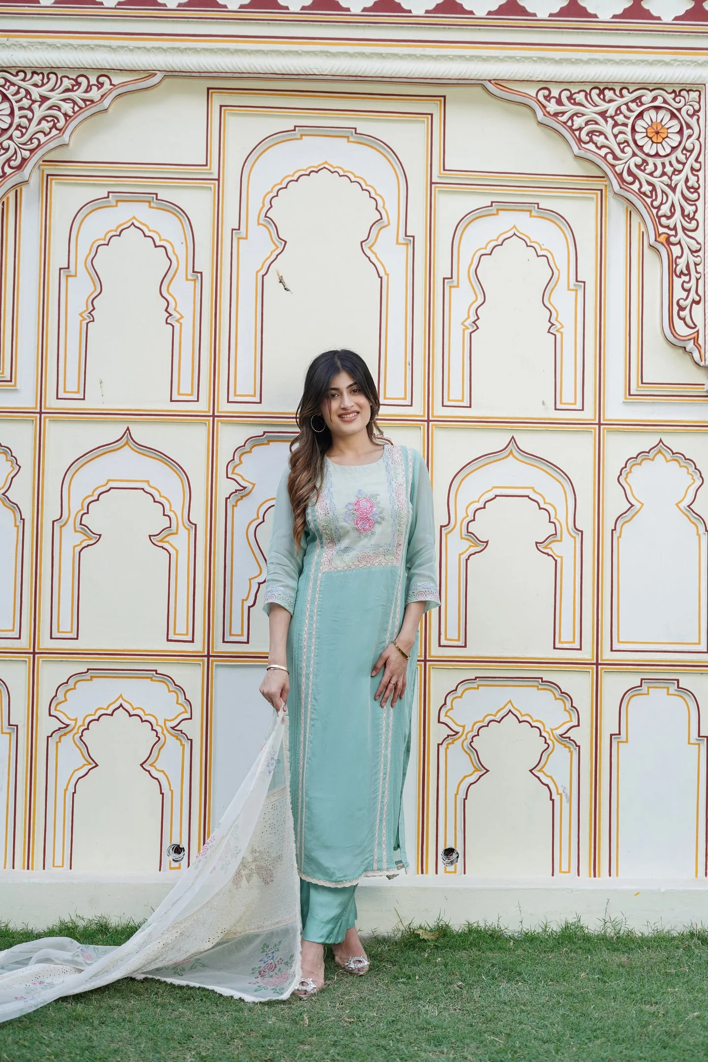 A graceful Cambridge Blue Suit Set, designed for effortless elegance and modern sophistication. Perfect for festive celebrations, formal gatherings, and chic everyday wear.